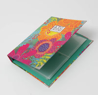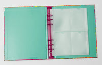 This colorful ring binder from Art by Marlene contains 5 pages, each with 4 pockets, to store your ATC cards. So you can already store 20 cards in it. This binder is a handy size that's easy to take to fairs and other events to swap your ATC cards. Others can easily browse through it and pick out the cards they want to swap with you. This binder is part of the Art by Marlene 25 collection.