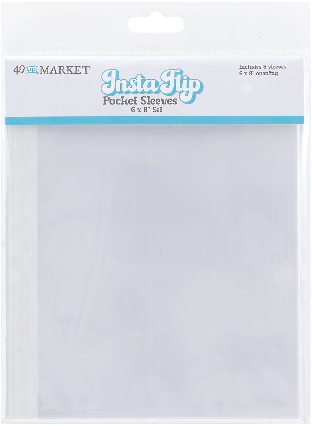 49 And Market InstaFlip Sleeves 6x8 - Need more space for your precious photos? 49 and Market Insta Flip Pocket Sleeves are the perfect solution! This pack includes eight clear photo flips .Simply peel off the adhesive strip and stick them to any pocket page or scrapbook project for instant photo storage. Acid Free.