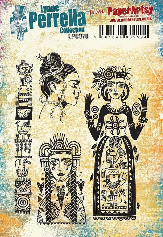 Designed by Lynne Perrella, these stamps are typical of her iconic design style. Lynne Perrella is well known as a designer and artist, and we are thrilled to have her design for PaperArtsy, SARL on a regular basis. She was THE original 'collage style' rubber stamp designer back in the 1970's for her own company 'Acey Deucey' .