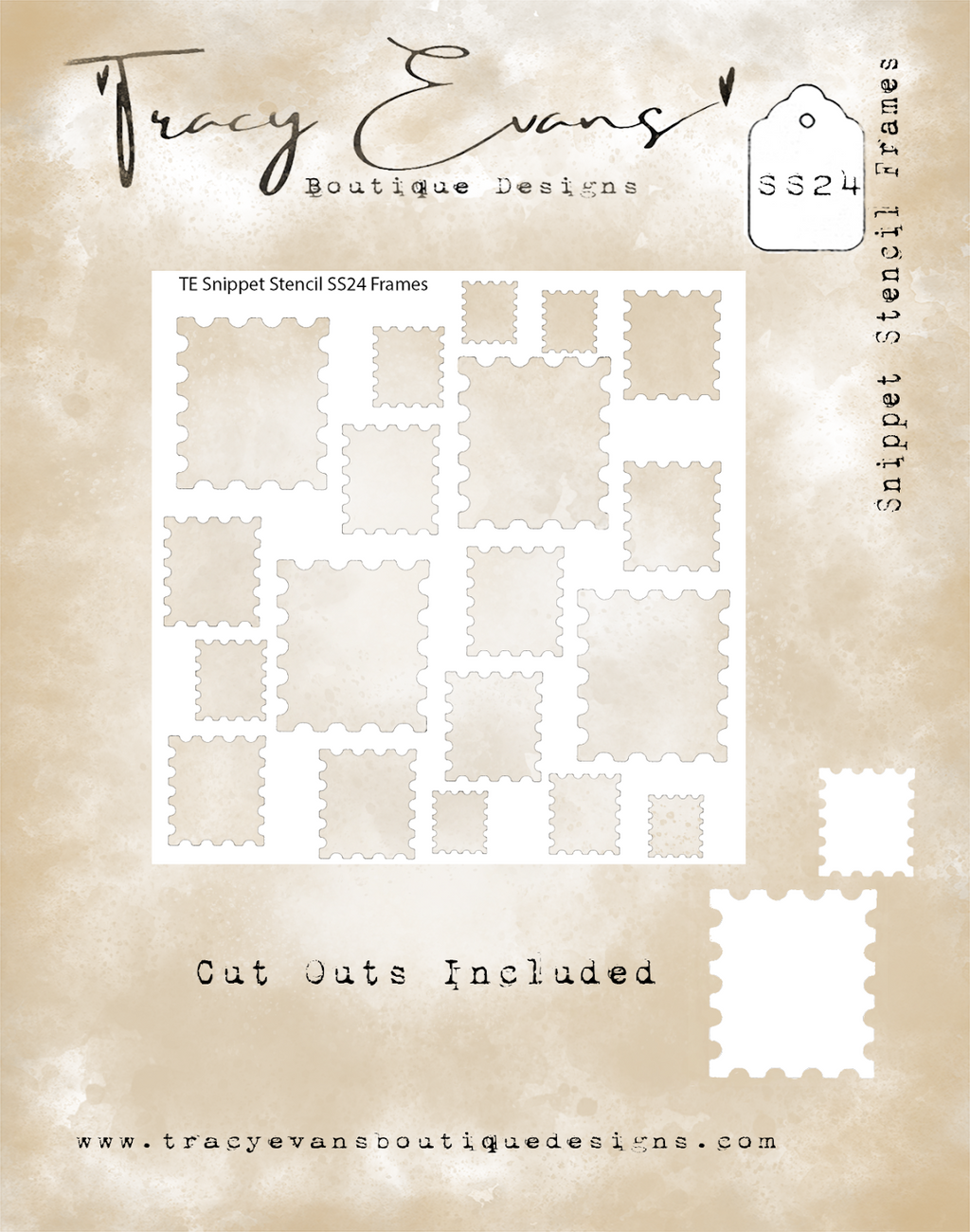 SS24 is a Snippet Stencil 4 x 4 inches and cut outs included